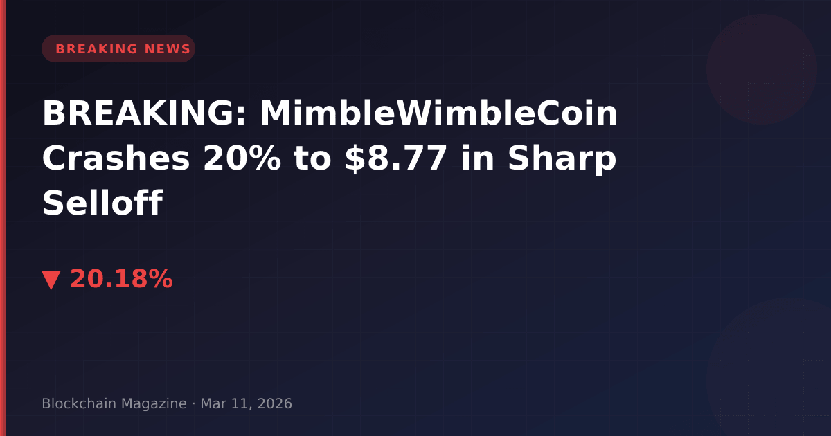 MimbleWimbleCoin (MWC) has suffered a dramatic 20.2% decline to $8.77 in the past 24 hours, intensifying a broader selloff that has seen the privacy-focused cryptocurrency lose more than half its value over the past month.