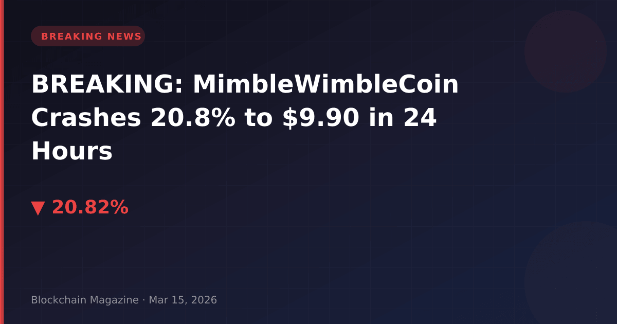 MimbleWimbleCoin (MWC), a privacy-focused cryptocurrency utilizing the MimbleWimble protocol, has experienced a severe price crash, dropping 20.8% to $9.90 in the past 24 hours as of March 15, 2026.