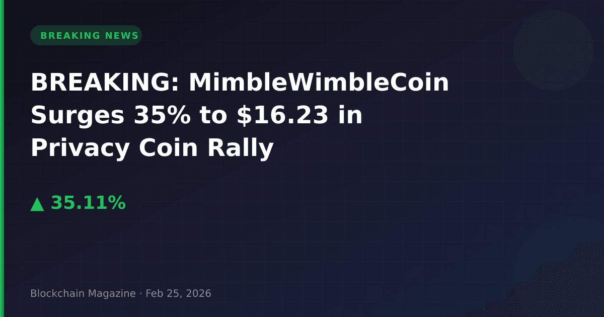 MimbleWimbleCoin (MWC) has experienced a dramatic 35.1% price surge in the past 24 hours, climbing from $12.01 to $16.23 as of 6:22 AM UTC on February 25, 2026.