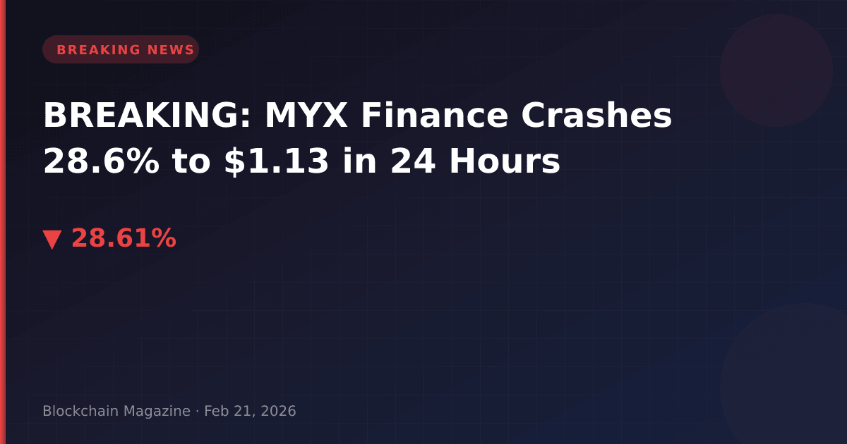 MYX Finance (MYX) experienced a severe market downturn on February 21, 2026, plunging 28.6% to $1.13 as heavy selling pressure engulfed the decentralized derivatives platform token.