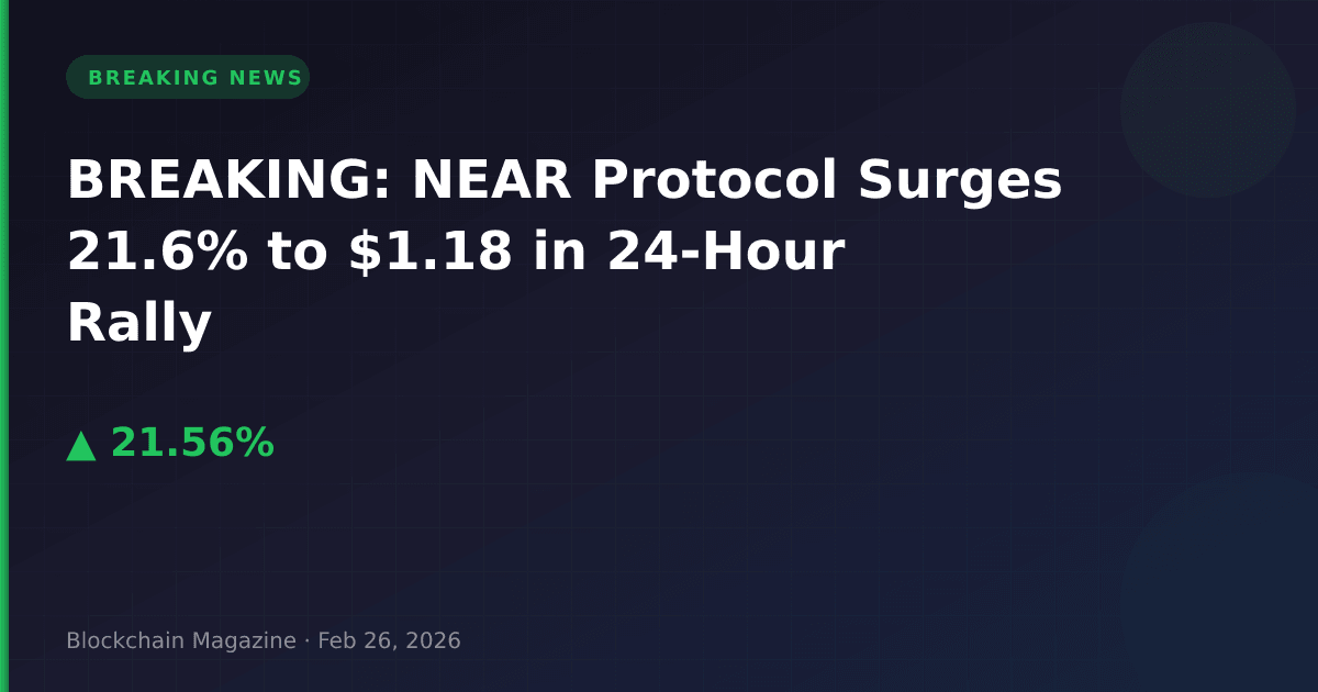 NEAR Protocol (NEAR) has experienced a dramatic 21.6% price surge in the past 24 hours, climbing to $1.18 as of February 26, 2026, with trading volume surpassing $301 million.