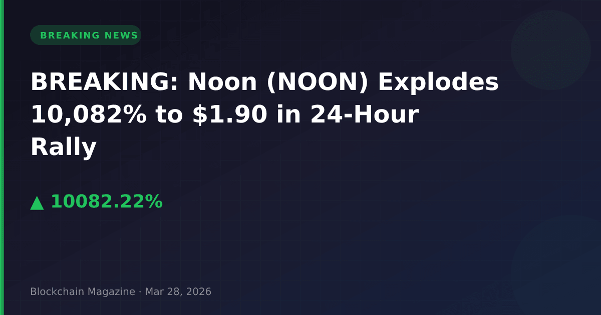Noon (NOON) has recorded one of the most explosive price movements in recent cryptocurrency history, surging an unprecedented 10,082.2% in the past 24 hours to reach $1.90 as of March 28, 2026.