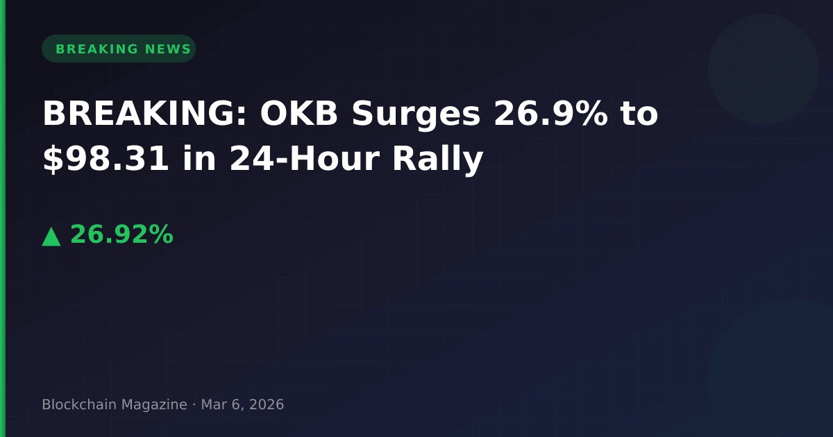 BREAKING: OKB, the native utility token of the OKX cryptocurrency exchange, has surged 26.9% in the past 24 hours, reaching $98.31 as of 00:37 UTC on March 6, 2026.