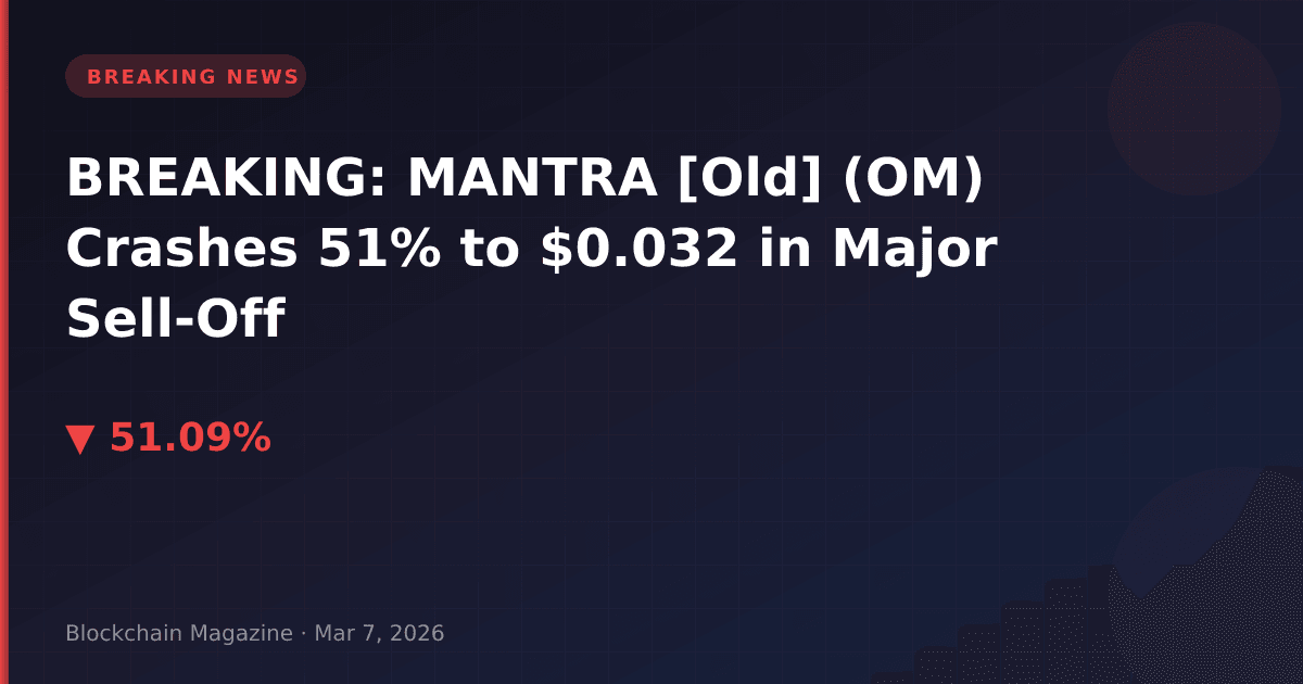 MANTRA [Old] (OM) has experienced a catastrophic price collapse, plunging 51.1% to $0.03243784 in the past 24 hours, according to market data updated March 7, 2026.