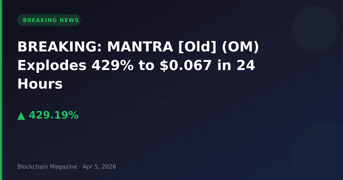 MANTRA [Old] (OM) has exploded 429.2% in the past 24 hours, reaching $0.066886 as of 2:07 AM UTC on April 5, 2026, in one of the most dramatic single-day rallies in recent cryptocurrency market history.