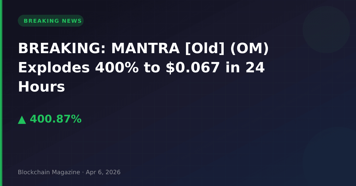 MANTRA [Old] (OM) has exploded over 400% in the past 24 hours, surging from $0.0134 to $0.067239 as of April 6, 2026, in one of the most dramatic single-day rallies in recent crypto market history.