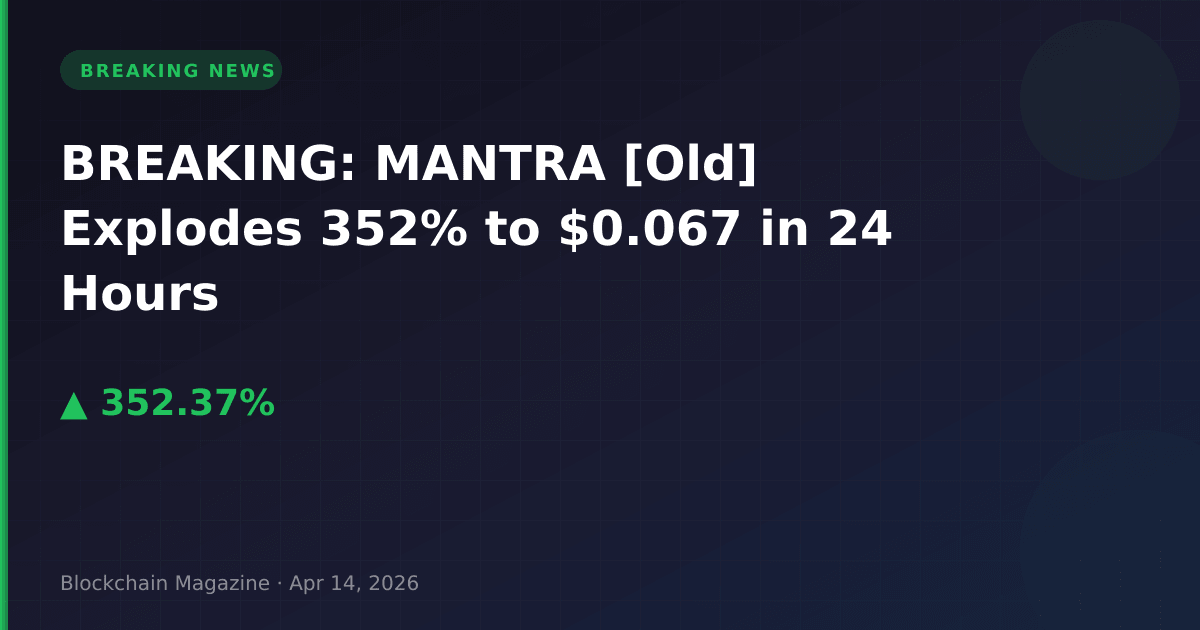 MANTRA [Old] (OM) has experienced an explosive 352.4% price surge in the past 24 hours, catapulting from approximately $0.015 to $0.066862 as of April 14, 2026, at 23:21 UTC.