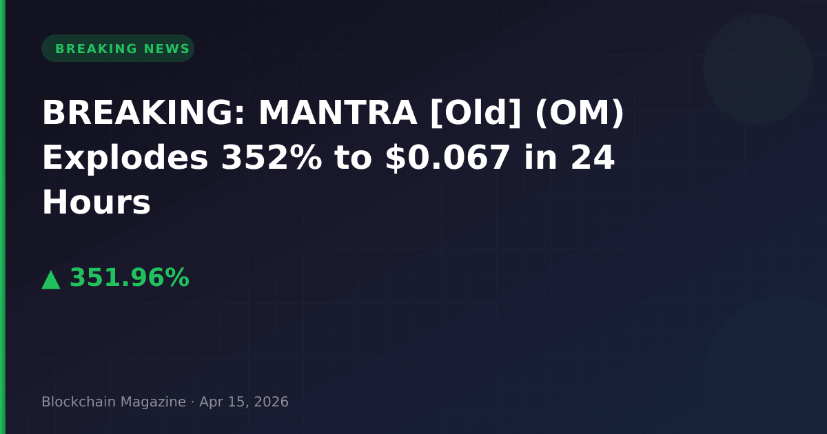 MANTRA [Old] (OM) has exploded 352% in the past 24 hours, surging from $0.01250 to $0.066861 as of April 15, 2026, in one of the most dramatic price movements in today’s crypto market.