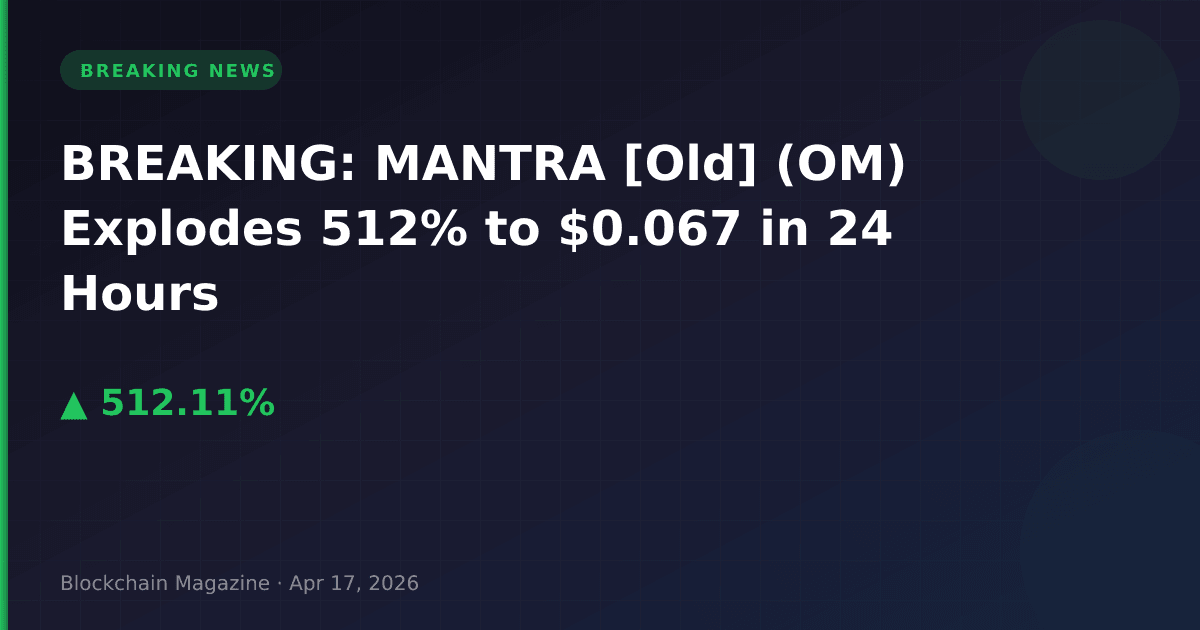 In one of the most dramatic price movements in the cryptocurrency market today, MANTRA [Old] (OM) has surged an astonishing 512.1% in the past 24 hours, reaching a current price of $0.066981 as of April 17, 2026.