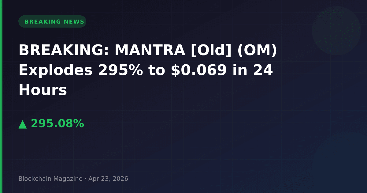 MANTRA [Old] (OM) has recorded one of the most dramatic price movements in the crypto market today, surging 295.1% in 24 hours to reach $0.069198 as of 22:51 UTC on April 23, 2026.