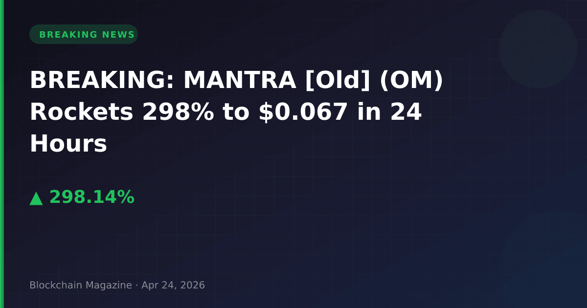 MANTRA [Old] (OM) has experienced an explosive 298.1% surge in the past 24 hours, reaching $0.066831 as of April 24, 2026, marking one of the most dramatic price movements in the cryptocurrency market today.