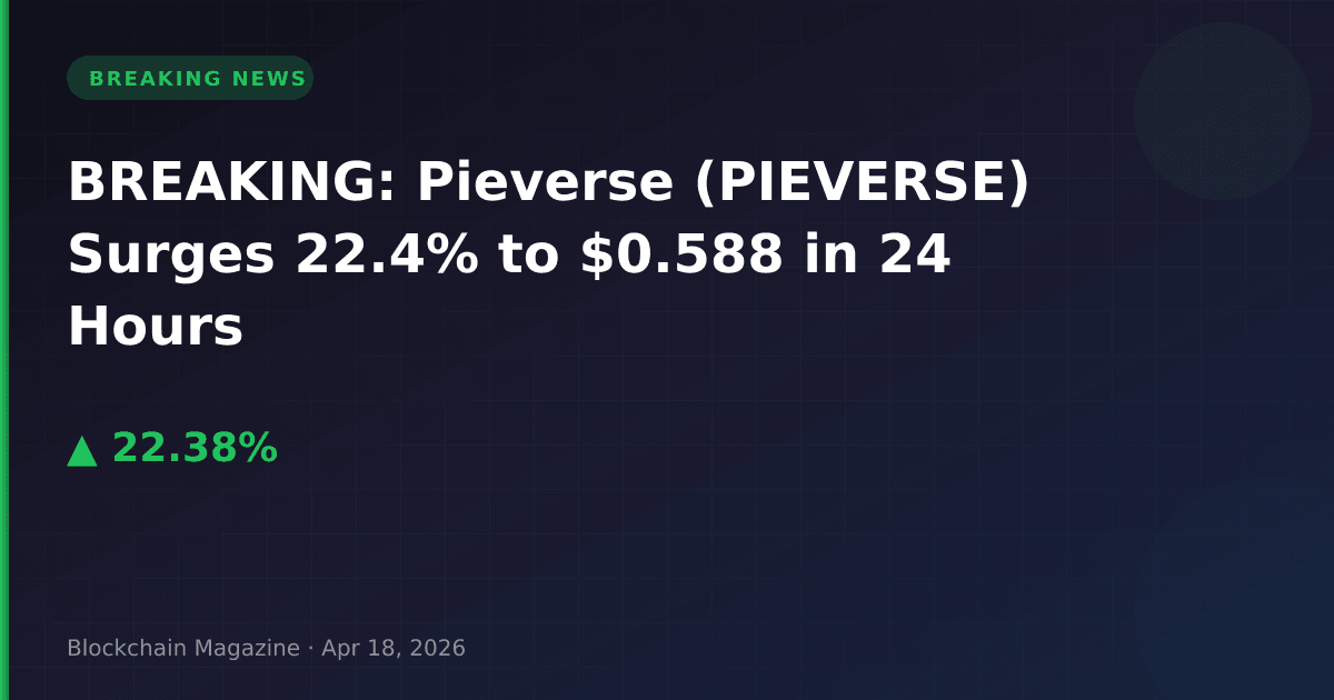 April 18, 2026 – Pieverse (PIEVERSE) has experienced a significant price surge, climbing 22.4% in the past 24 hours to reach $0.588022, according to the latest market data.