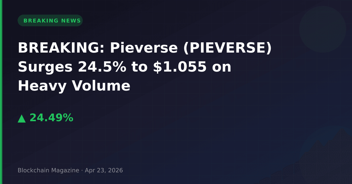 BREAKING: Pieverse (PIEVERSE) has surged 24.5% in the past 24 hours to reach $1.055, accompanied by exceptional trading volume of $230.4 million as of April 23, 2026.