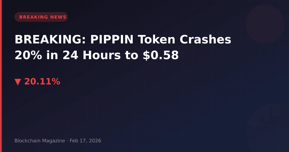 PIPPIN (PIPPIN) has experienced a sharp decline, plummeting 20.1% over the past 24 hours to trade at $0.580478 as of 12:06 UTC on February 17, 2026. The dramatic sell-off has wiped $143.75 million from the token’s market capitalization, which now stands at $582.68 million.