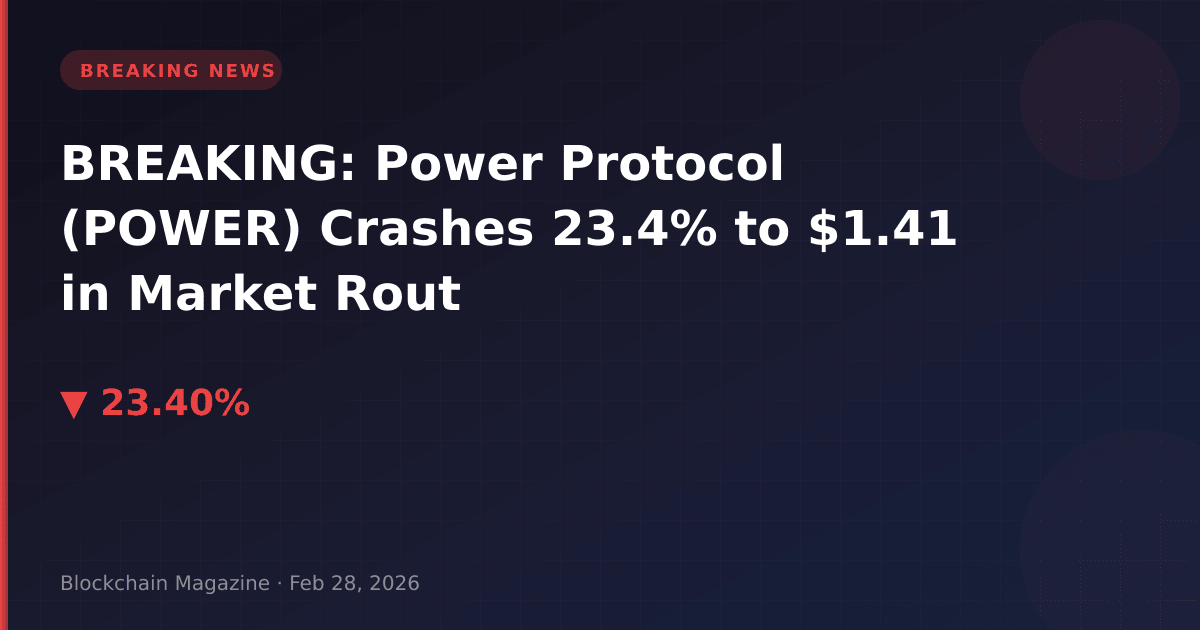 Power Protocol (POWER) has experienced a dramatic sell-off, plunging 23.4% to $1.41 in the past 24 hours, marking one of the sharpest declines among top-150 cryptocurrencies by market capitalization.