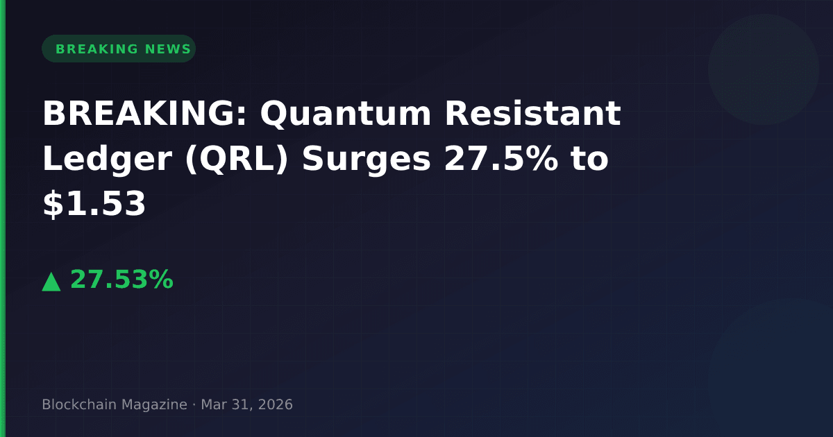 Quantum Resistant Ledger (QRL) has experienced a dramatic price surge, jumping 27.5% in the past 24 hours to reach $1.53 as of 8:07 AM UTC on March 31, 2026. The rally represents one of the strongest single-day performances among top 250 cryptocurrencies.