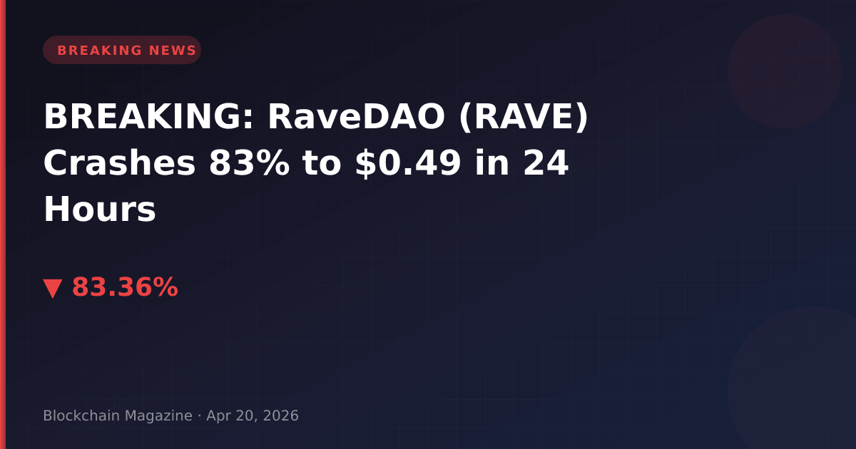 BREAKING: RaveDAO (RAVE) has experienced a catastrophic price collapse, plunging 83.4% to $0.489381 in the past 24 hours, wiping out over $622 million in market capitalization.