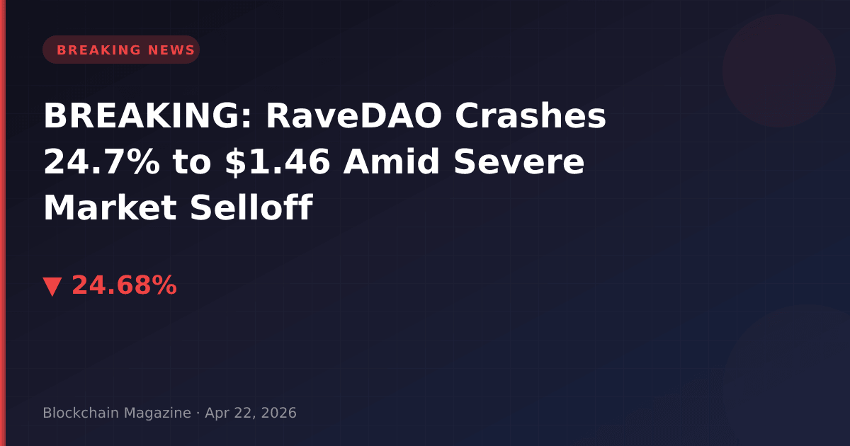 RaveDAO (RAVE) has experienced a dramatic selloff, plunging 24.7% to $1.46 in the past 24 hours as market pressure intensifies on the community-driven entertainment token.