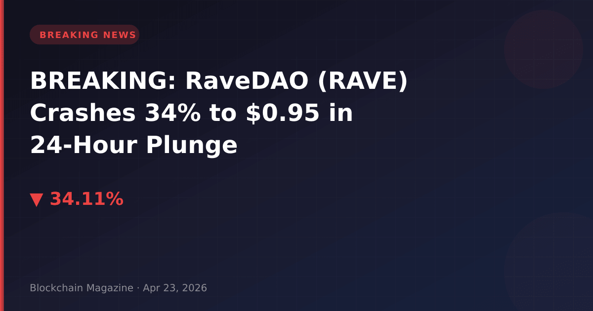 RaveDAO (RAVE) experienced a severe market correction on April 23, 2026, plunging 34.1% to $0.952209 in a dramatic 24-hour selloff that has raised concerns among crypto investors.
