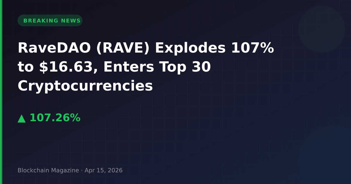 RaveDAO (RAVE) has posted one of the most significant price movements in the cryptocurrency market today, surging 107.3% over the past 24 hours to reach $16.63 as of April 15, 2026.