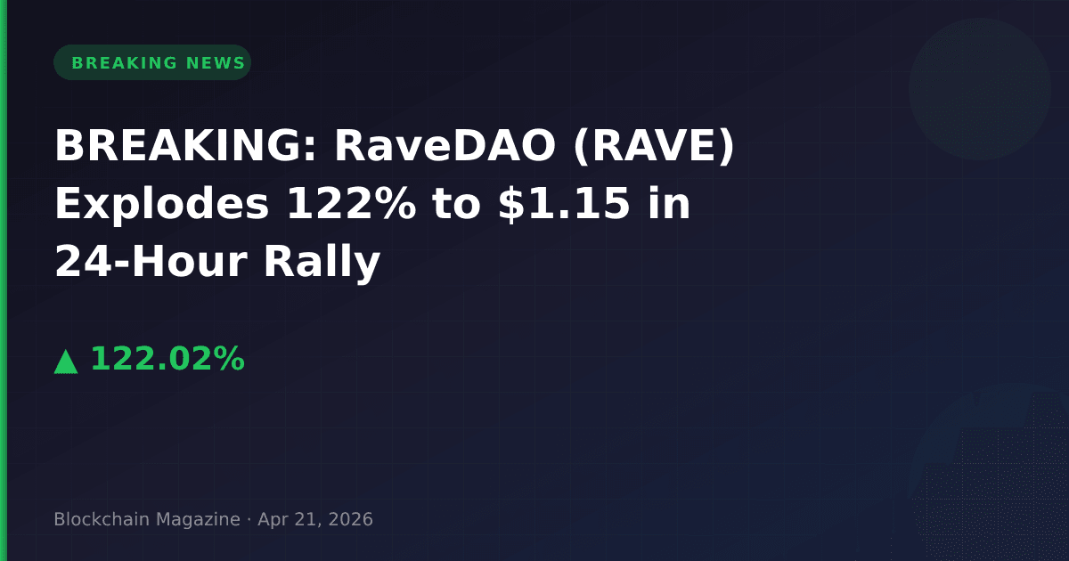 RaveDAO (RAVE) has exploded 122% in the past 24 hours, reaching $1.15 as of April 21, 2026, in one of the most dramatic single-day rallies in the cryptocurrency market.