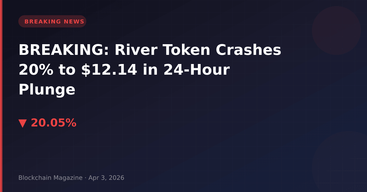 River (RIVER) has experienced a dramatic 20% price collapse in the past 24 hours, plunging to $12.14 as of April 3, 2026, in one of the most significant single-day declines for the cryptocurrency.