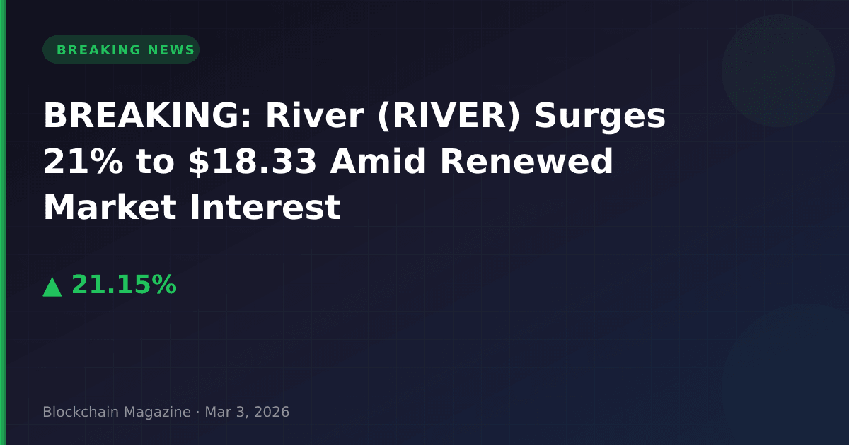 River (RIVER) has recorded a sharp 21.2% price surge in the past 24 hours, reaching $18.33 as of 12:52 PM UTC on March 3, 2026, according to real-time market data.