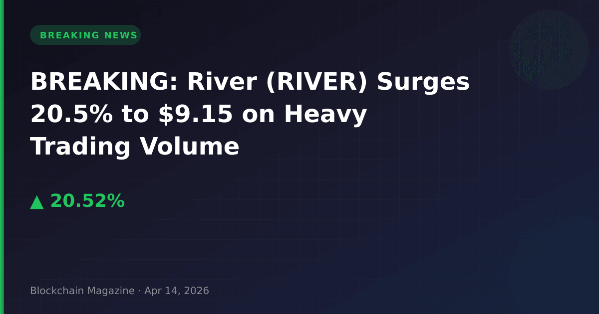 River (RIVER) has posted a sharp 20.5% gain over the past 24 hours, climbing to $9.15 as of 4:52 PM UTC on April 14, 2026, according to real-time market data.