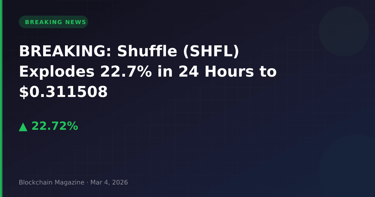 Shuffle (SHFL), the native token of the crypto casino and gaming platform, has posted explosive gains of 22.7% over the past 24 hours, reaching $0.311508 as of March 4, 2026, at 22:37 UTC.