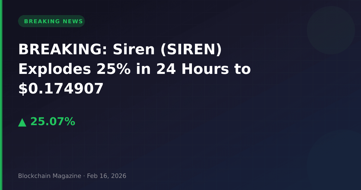 BREAKING: Siren (SIREN) has exploded 25.1% in the past 24 hours, reaching $0.174907 as of 6:06 AM UTC on February 16, 2026, according to live market data.
