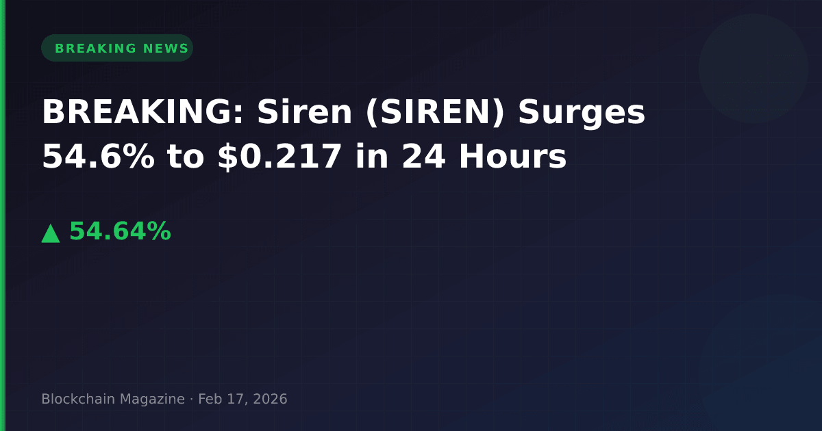 BREAKING: Siren (SIREN) has experienced a dramatic surge of 54.6% in the past 24 hours, with the token currently trading at $0.216986 as of February 17, 2026.