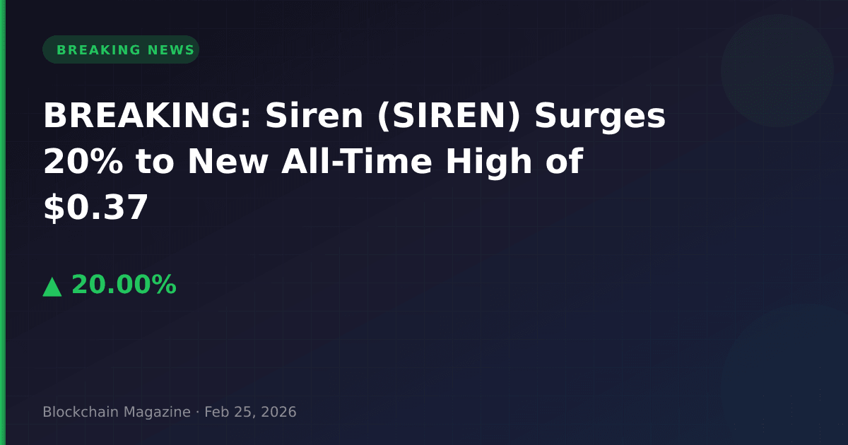 BREAKING UPDATE – February 25, 2026, 5:22 AM UTC: Siren (SIREN) has surged 20% in the past 24 hours, reaching $0.371376 and setting a new all-time high just moments ago at $0.369533.