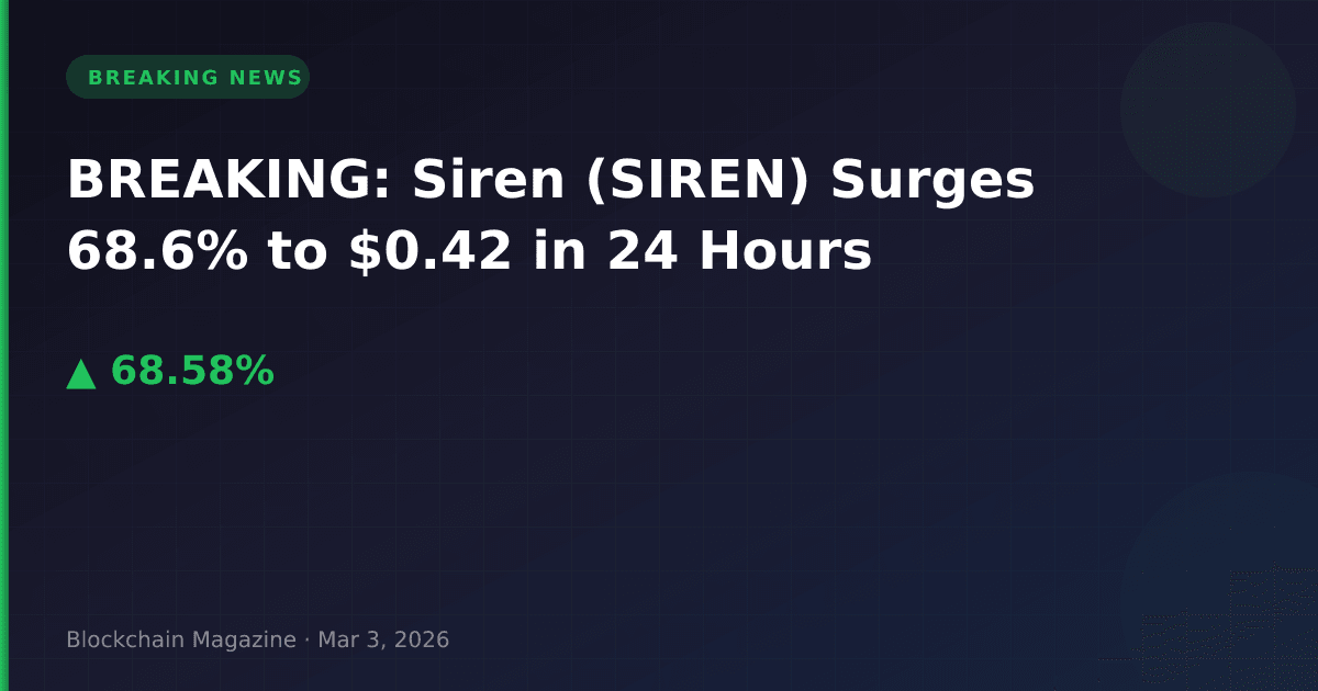 March 3, 2026 – Siren (SIREN) has emerged as one of today’s top-performing cryptocurrencies, surging 68.6% in the past 24 hours to reach $0.422649 as of 00:07 UTC.
