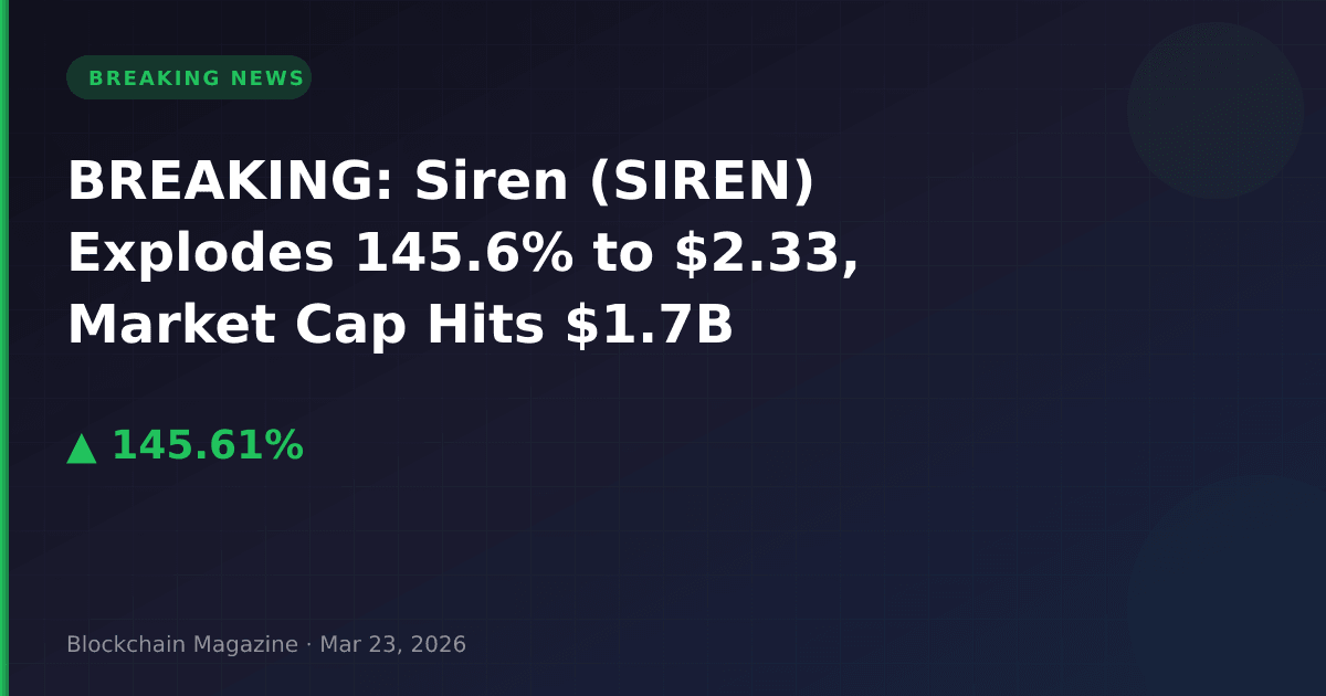 Siren (SIREN) has experienced a massive 145.6% price surge in the past 24 hours, reaching $2.33 as of March 23, 2026, in one of the most significant single-day rallies in the cryptocurrency market today.