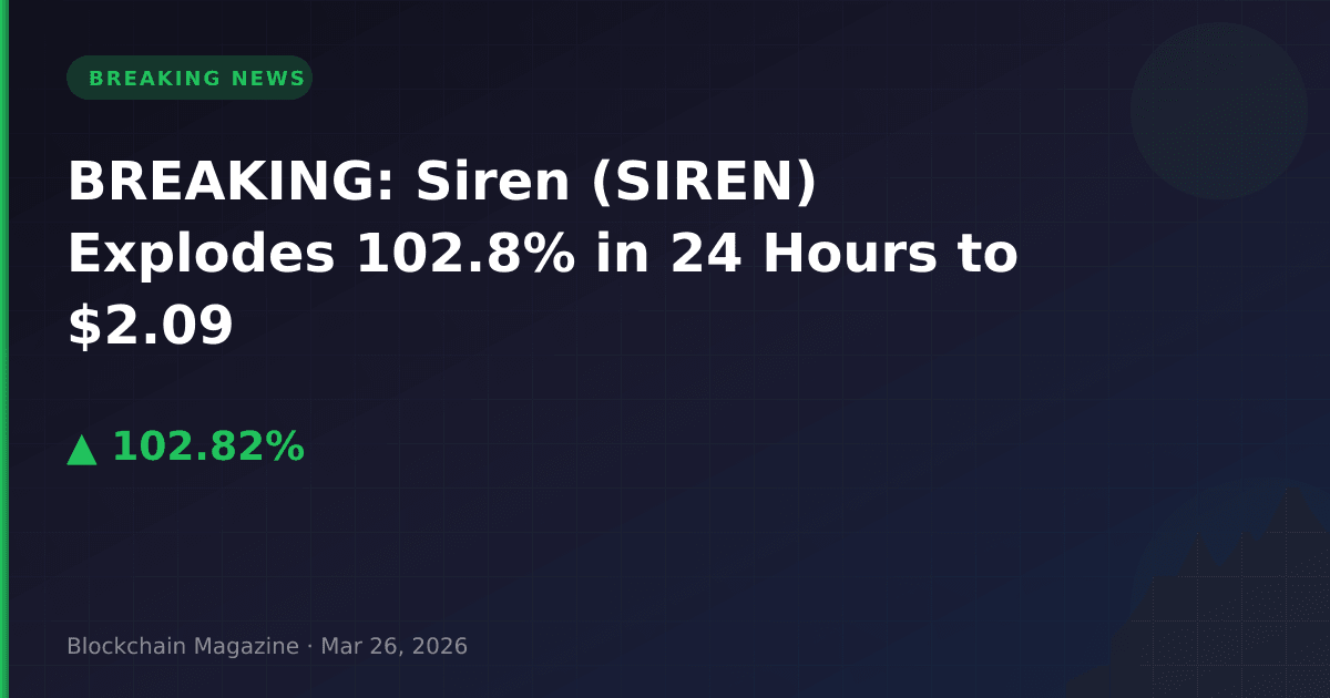 Siren (SIREN) has experienced an explosive 102.8% price surge in the past 24 hours, jumping from $1.03 to $2.09 as of March 26, 2026, according to real-time market data. The dramatic price movement has pushed the token’s market capitalization to $1.50 billion, securing the #53 ranking among all cryptocurrencies.