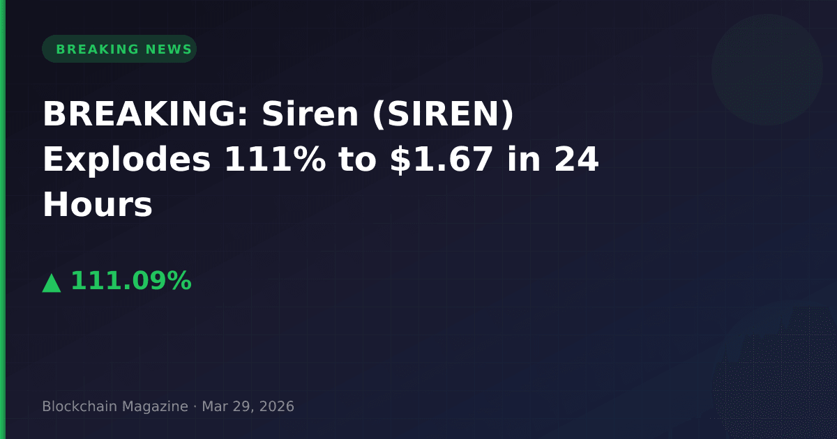 Siren (SIREN) has exploded 111.1% in the past 24 hours, reaching $1.67 as of March 29, 2026, according to real-time market data. The dramatic surge has added $645.4 million to the token’s market capitalization, which now stands at $1.23 billion, placing it at rank #60 among all cryptocurrencies.