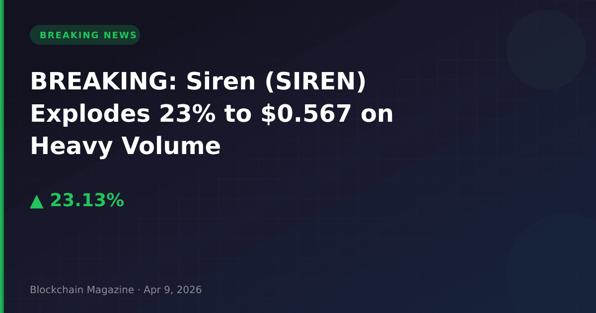 Siren (SIREN) has emerged as one of the top-performing cryptocurrencies in the market today, surging 23.1% to $0.566527 as of 4:37 AM UTC on April 9, 2026, according to live market data.