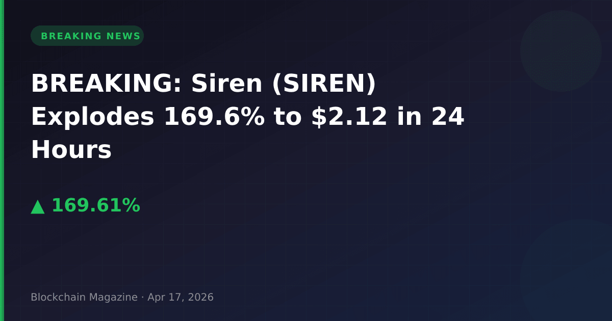 BREAKING – April 17, 2026: Siren (SIREN) has experienced an explosive price surge, skyrocketing 169.6% in the past 24 hours to reach $2.12, according to latest market data.