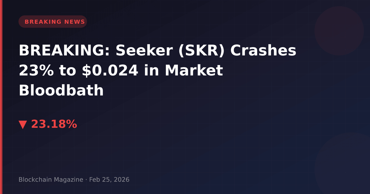 BREAKING: Seeker (SKR) has crashed 23.2% in the past 24 hours, trading at $0.02448709 as of 05:52 UTC on February 25, 2026, according to live market data.