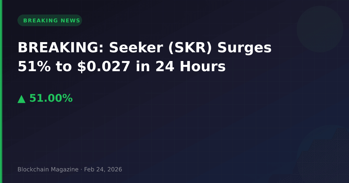 February 24, 2026 – Seeker (SKR) has experienced a dramatic 51% price surge in the past 24 hours, climbing from $0.01764 to $0.02663 as of 5:06 AM UTC, according to real-time market data.