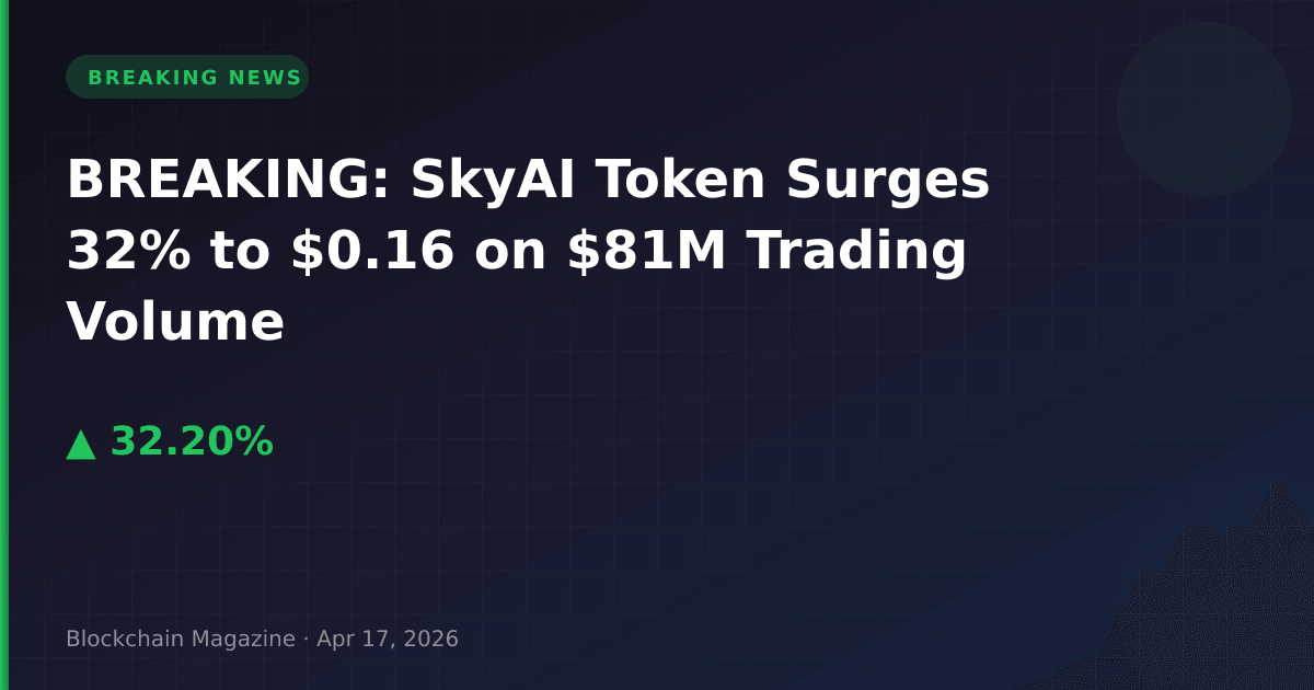 SkyAI (SKYAI) has experienced a dramatic price surge of 32.2% over the past 24 hours, reaching $0.160256 as of April 17, 2026, at 02:22 UTC. The AI-focused cryptocurrency has seen its market capitalization climb to $159.9 million, securing the #206 rank among all cryptocurrencies.