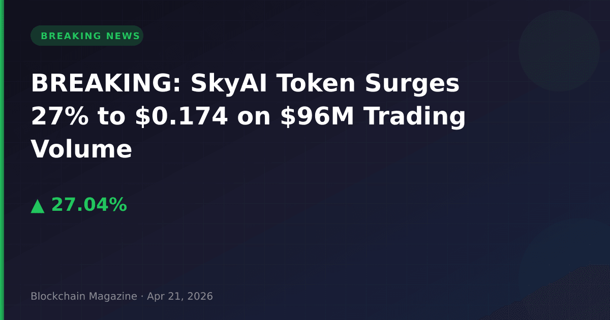 SkyAI (SKYAI) has experienced a dramatic surge of 27.04% in the past 24 hours, trading at $0.173963 as of April 21, 2026, according to live market data. The AI-focused cryptocurrency has climbed from a 24-hour low of $0.107141 to reach an intraday high of $0.185726.