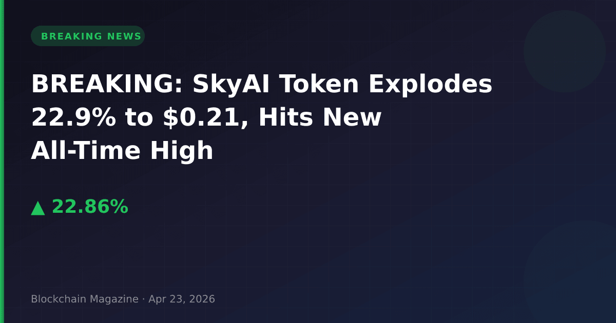 SkyAI (SKYAI), an AI-focused cryptocurrency, has surged 22.9% in the past 24 hours to reach $0.213033, marking a new all-time high at 18:20 UTC on April 23, 2026.