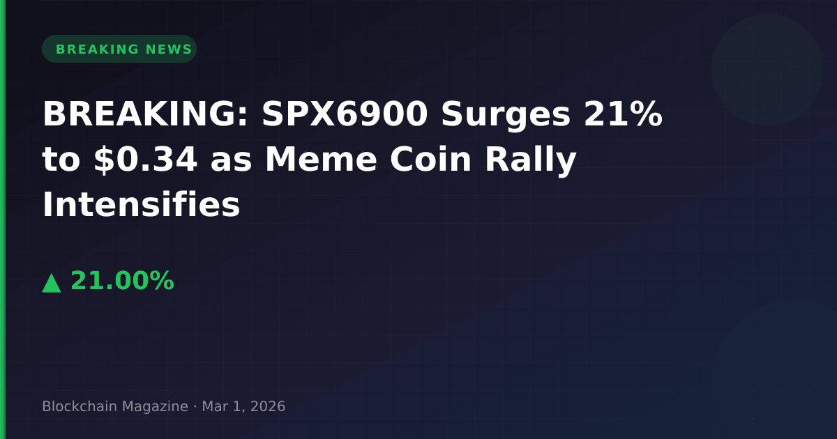 BREAKING NEWS: SPX6900 (SPX), a meme cryptocurrency that parodies the S&P 500 index, has surged 21.0% in the past 24 hours to reach $0.336607, according to real-time market data updated March 1, 2026.