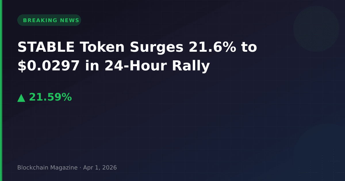 STABLE token has experienced a significant price surge, jumping 21.6% in the past 24 hours to reach $0.02966284 as of April 1, 2026. The rally has propelled the cryptocurrency’s market capitalization to $634.3 million, placing it at rank #85 among all cryptocurrencies.
