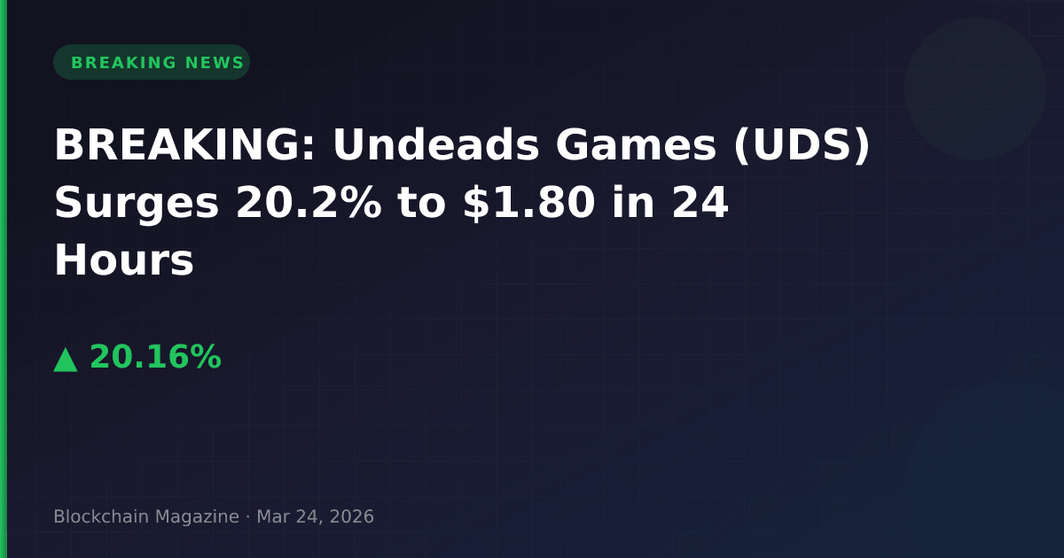 BREAKING: Undeads Games (UDS), a blockchain gaming token currently ranked #158 by market capitalization, has experienced a significant price surge of 20.2% in the past 24 hours, reaching $1.80 as of March 24, 2026.