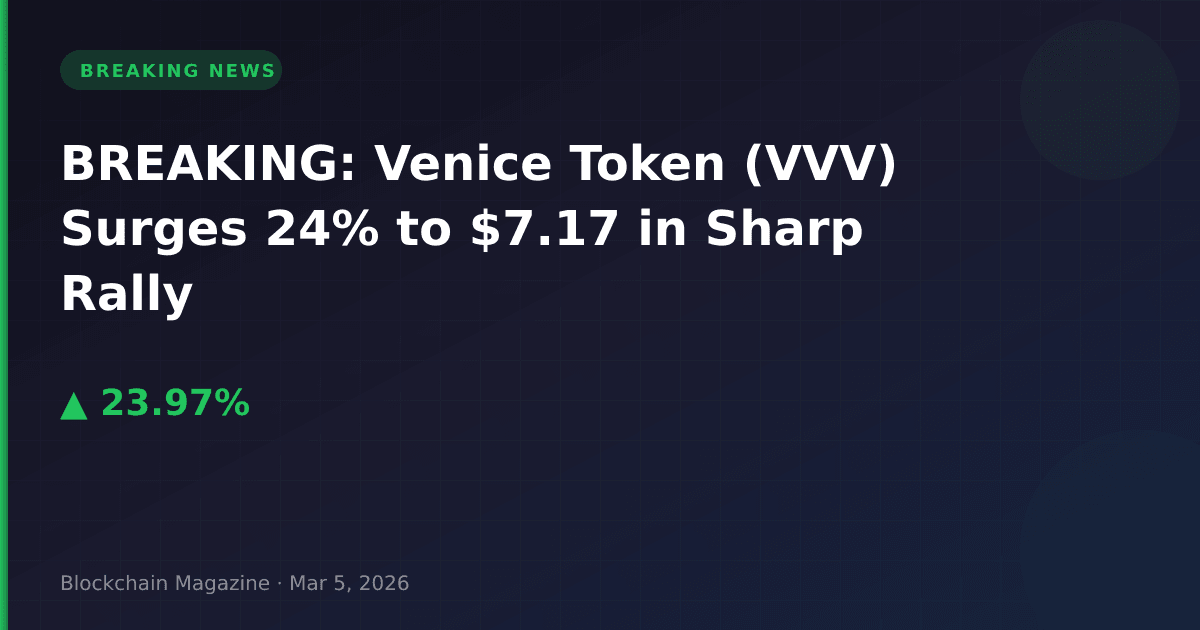 Venice Token (VVV) experienced a sharp 24% price surge on March 5, 2026, reaching $7.17 and extending what has become one of the most significant rallies in the cryptocurrency market over the past month.
