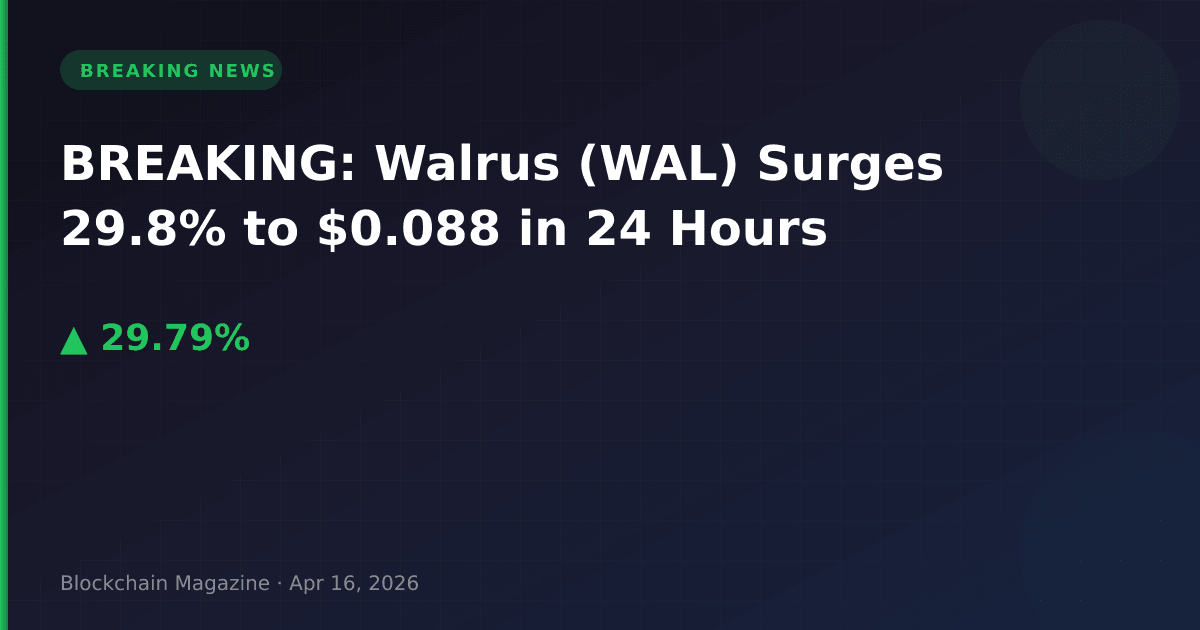 Walrus (WAL) has surged 29.8% in the past 24 hours, reaching $0.087911 as of 8:37 AM UTC on April 16, 2026, according to latest market data.