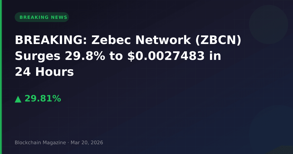 Zebec Network (ZBCN) has emerged as one of the top-performing cryptocurrencies on March 20, 2026, with a remarkable 29.8% price increase over the past 24 hours. The token is currently trading at $0.0027483, marking a significant rally that has captured trader attention.