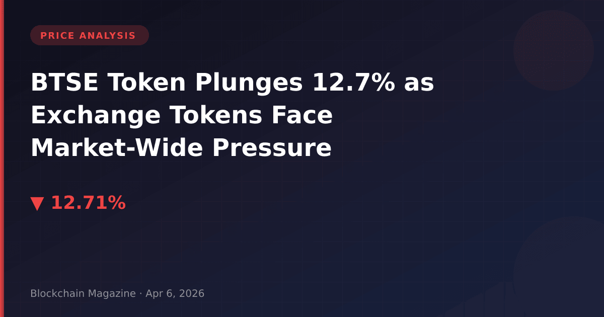 BTSE token has recorded one of its steepest single-day declines in recent months, plummeting 12.7% to $1.27 as of April 6, 2026. The selloff wiped out $30.4 million from its market capitalization, which now stands at $205.8 million. More concerning for holders, the token has now dropped 86.2% from its all-time high of $9.21 recorded on March 23, 2022, signaling persistent structural challenges that extend beyond temporary market volatility.